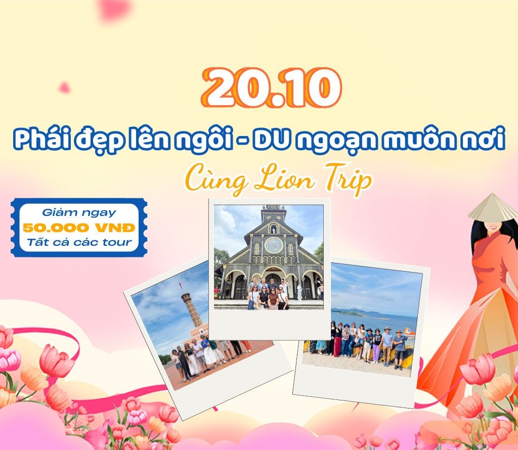 Một năm có 365 ngày, chỉ duy nhất 20/10 là ngày phái đẹp “lên ngôi”. Đây là dịp để bạn tự thưởng cho bản thân một chuyến đi ý nghĩa, hoặc dành tặng người phụ nữ thân yêu một hành trình du lịch trọn vẹn yêu thương. Hãy nhanh tay đăng ký tour tại Lion Trip để không bỏ lỡ ưu đãi tri ân hấp dẫn này! Nếu cần tư vấn chi tiết, vui lòng liên hệ Hotline: 1900 86 86 25 để được hỗ trợ nhanh nhất.